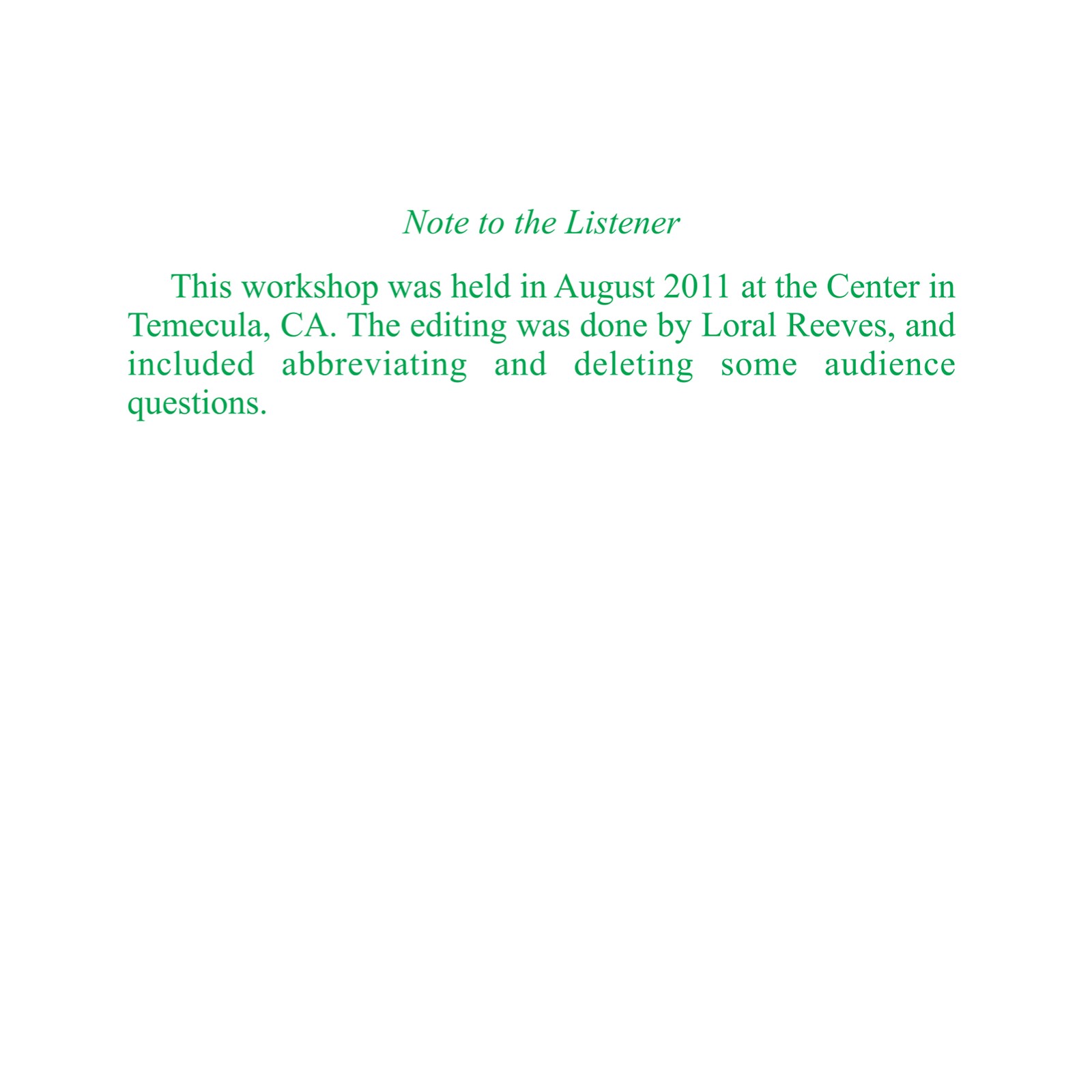 Original Workshop Date: 08/2011
