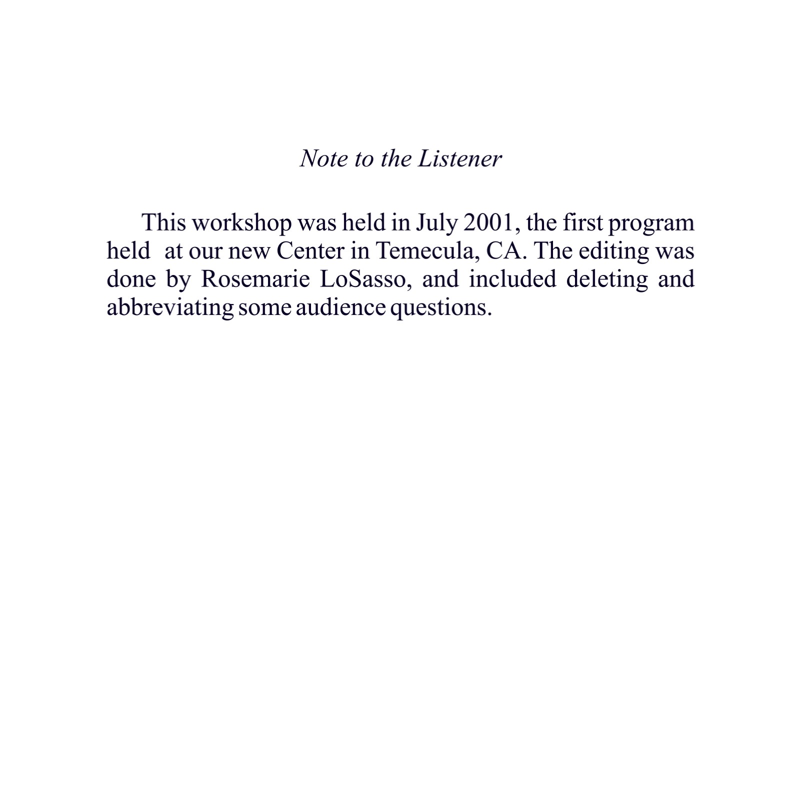 Original Workshop Date: 07/2001