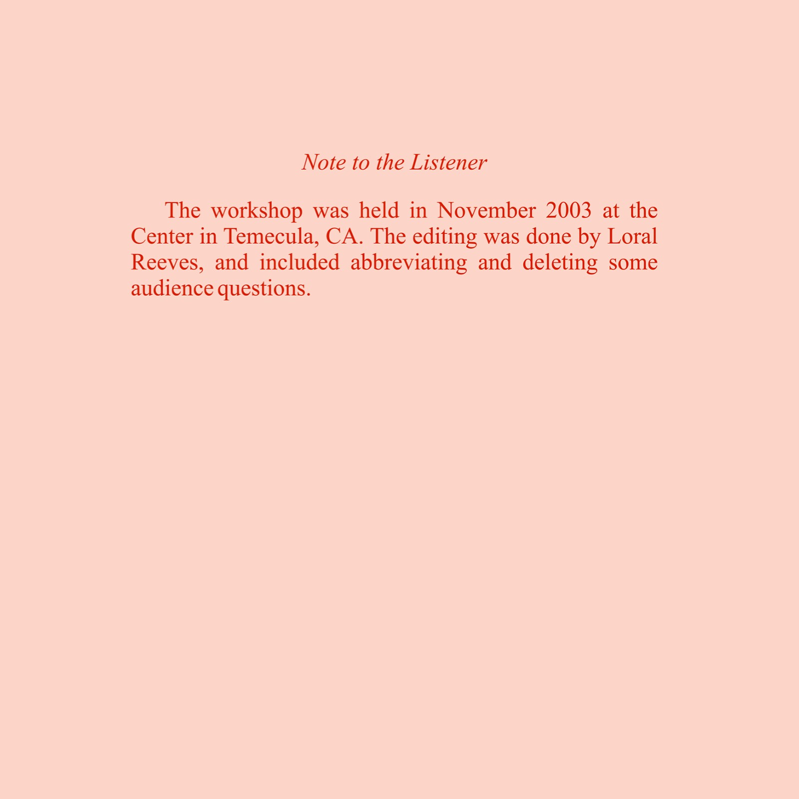 Original Workshop Date: 11/2003