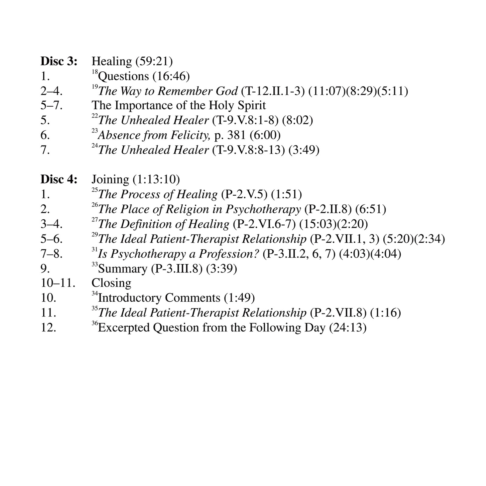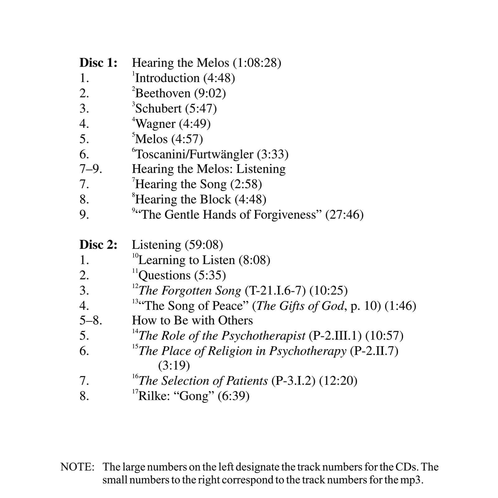 Using the example and symbolism of music—specifically Beethoven, Schubert, and Wagner—this August 2003 workshop develops the theme of listening, that we might hear in others and ourselves the inner melody or song (melos) that sings both of Heaven and our need to return. The teaching in this workshop thus goes to the heart of what it means to be a student of A Course in Miracles: learning to hear the “music behind the notes,” which would then lead us to be more kind and patient with each other, and therefore more genuinely helpful. Listening with Jesus prevents judgment and allows our healing heart to touch another’s pain with “the gentle hands of forgiveness.” Thus are we healed together and as one, learning that the melody of love is our Self.