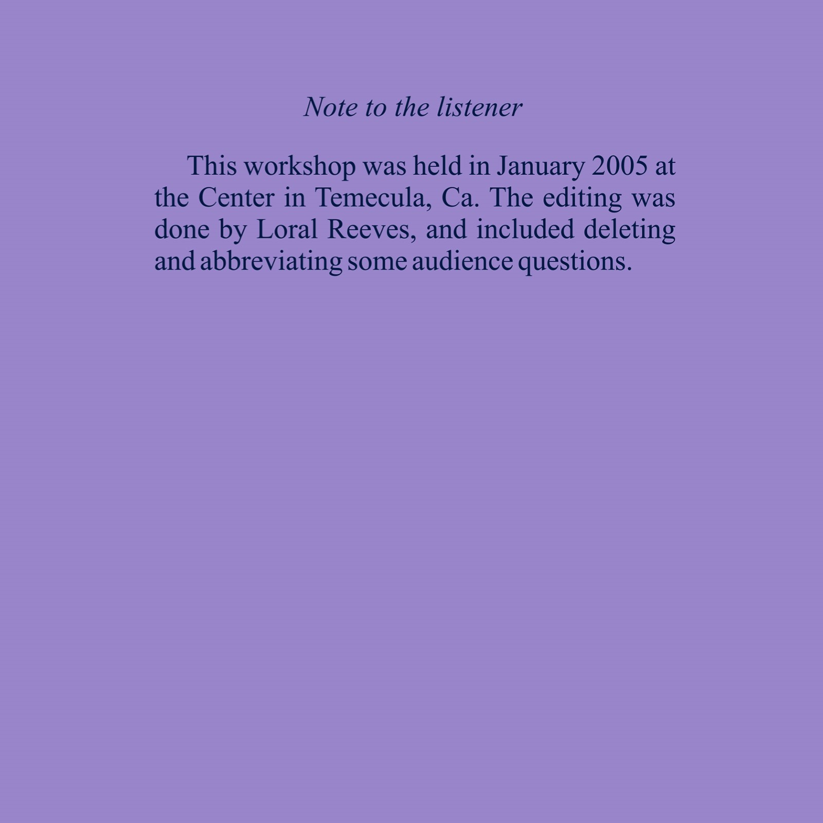 This workshop on Helen Schucman focused on Kenneth Wapnick’s intimate relationship with the scribe of A Course in Miracles for the last eight years of her life. A major part of the discussion centered on the importance of accepting people’s choices for themselves, without seeking to impose our own values or belief systems on them. Only then can we see past what appear to be clouds of darkness to the light of Christ that shines so brightly in each of us. This allows us to recognize, as was so demonstrable in Helen, the universality of the split mind—wrong and right minds, and the decision maker—and the Mind of Christ.