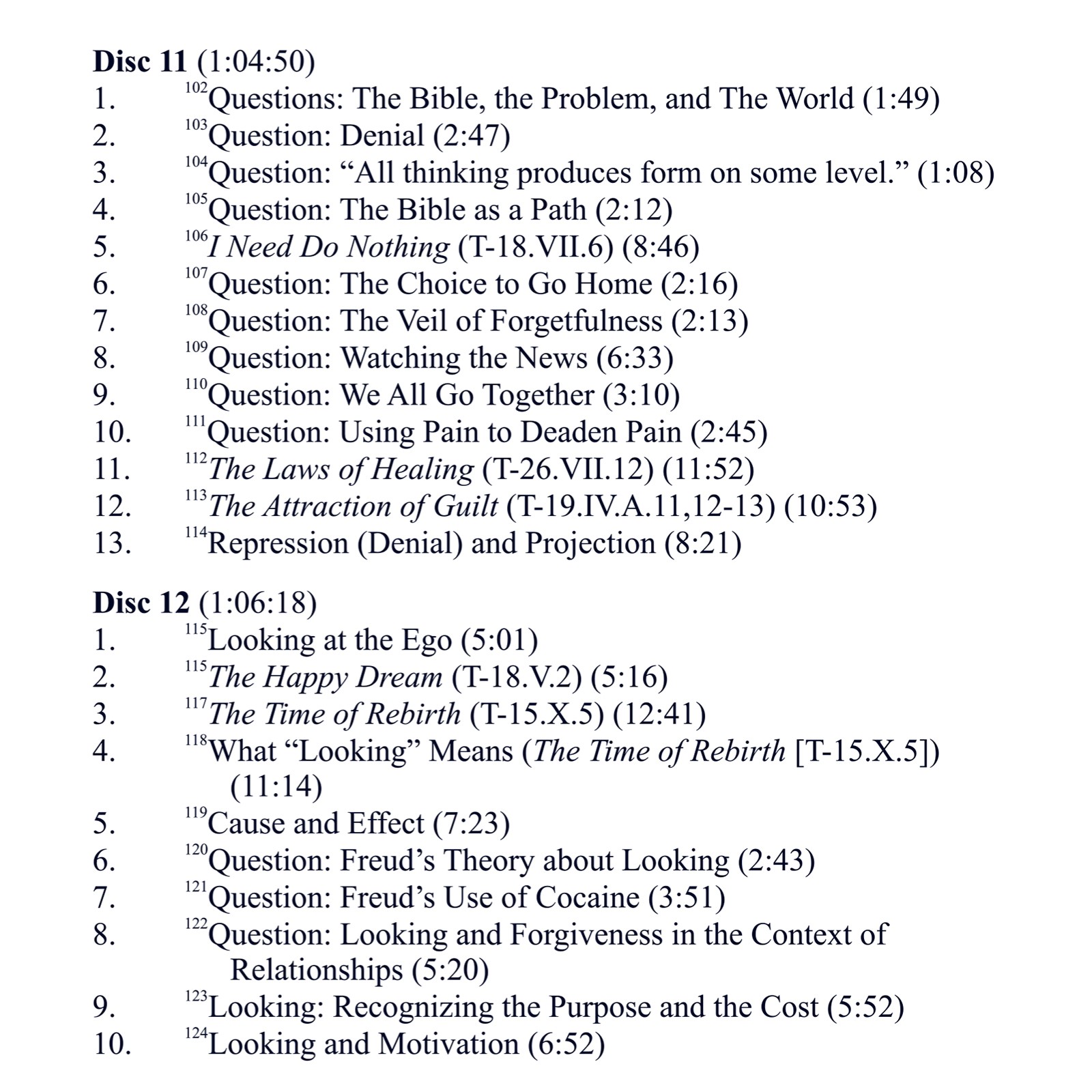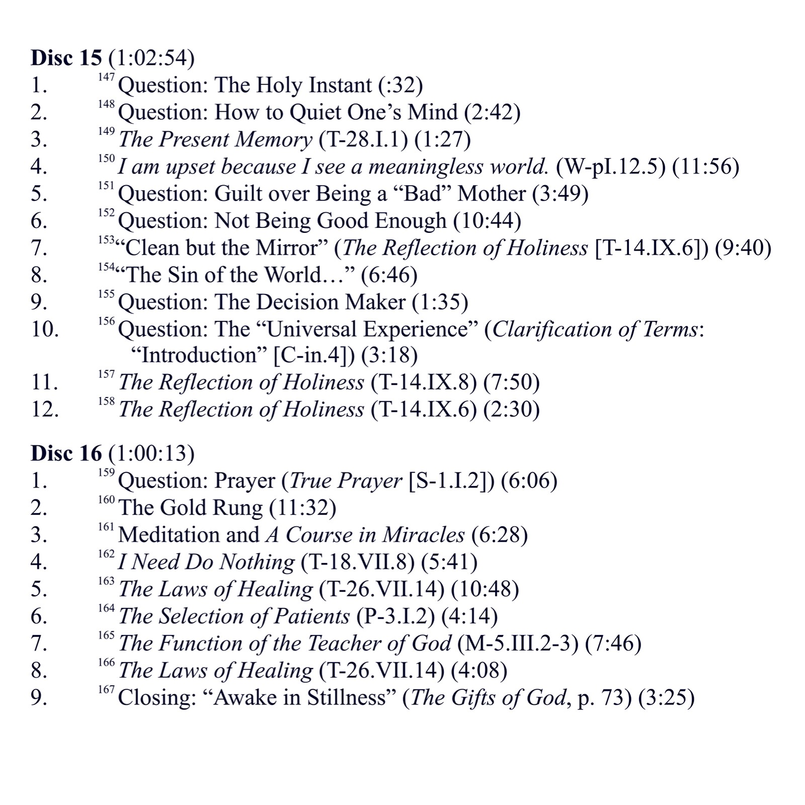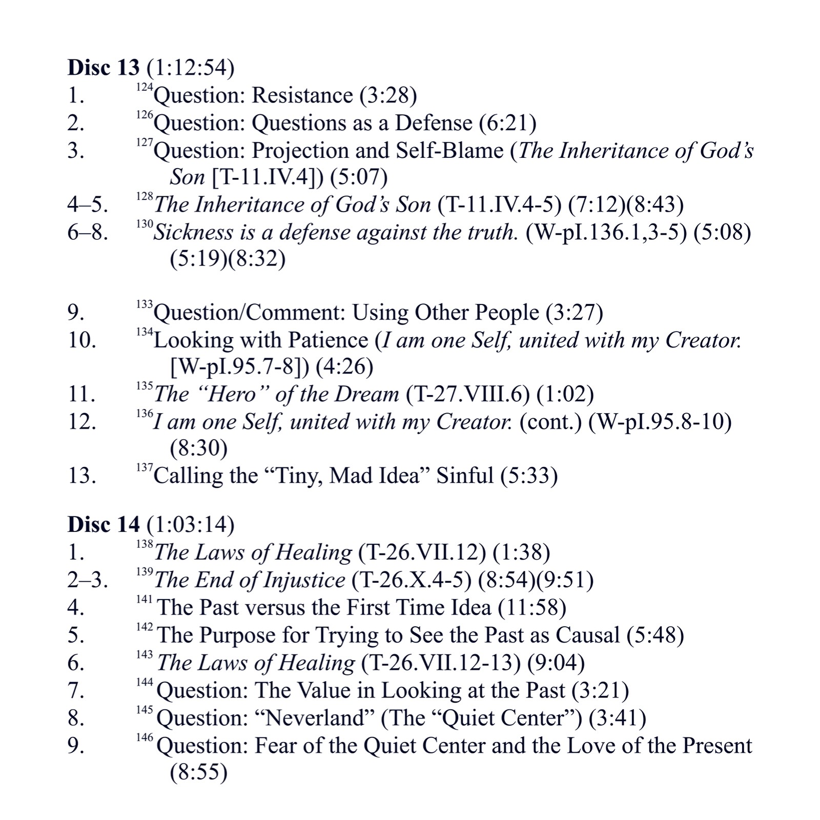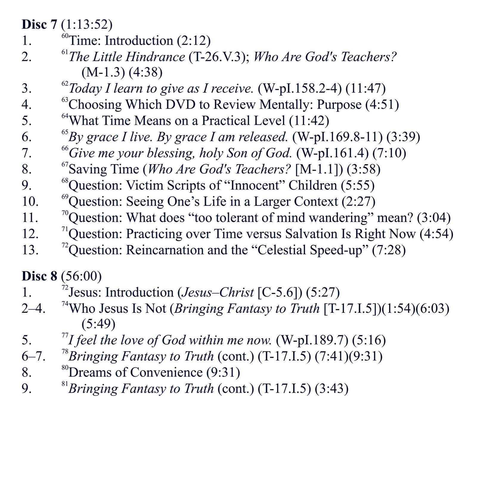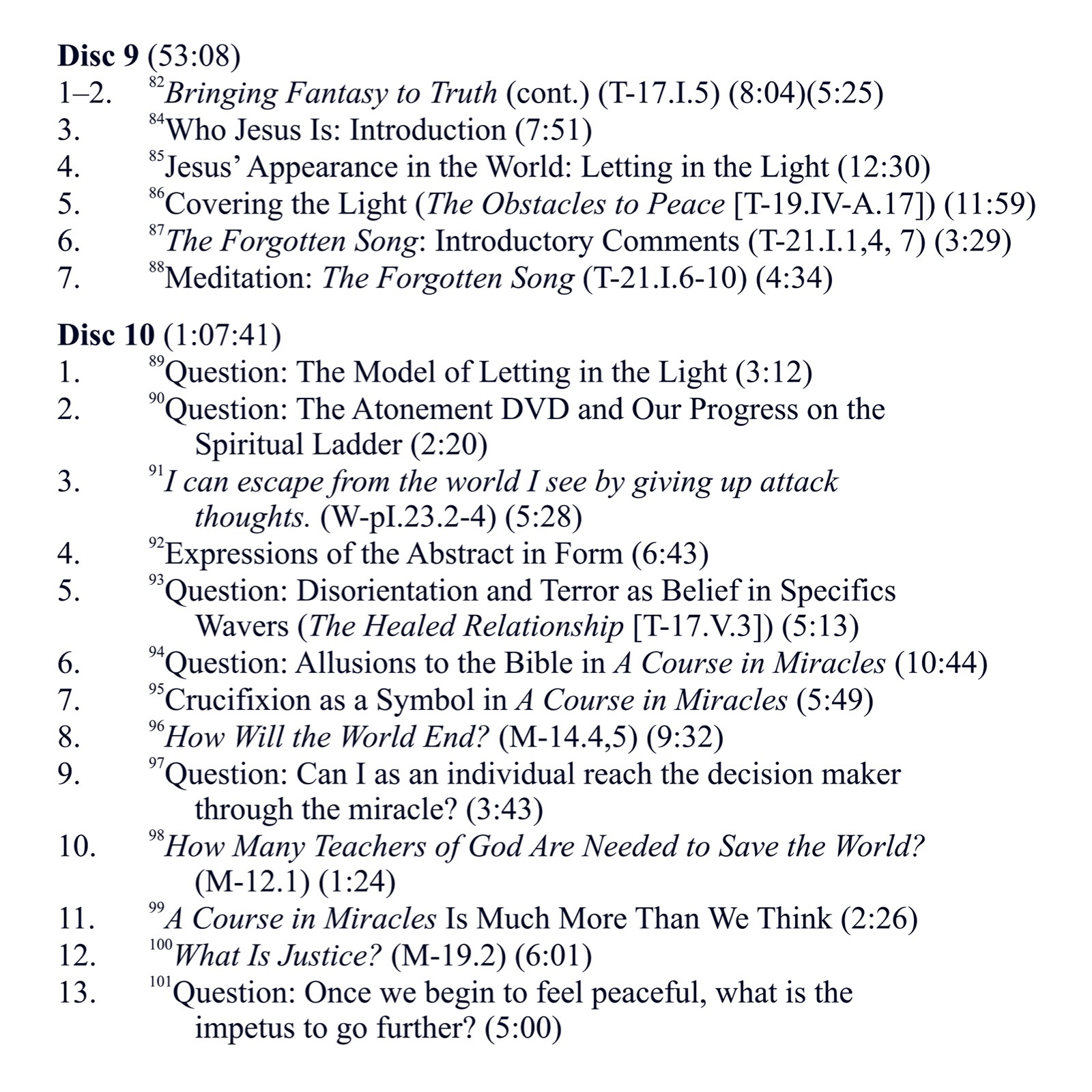 This set combines a workshop and five-day Academy class from March 2010, and focuses on the foundation of the Course’s theoretical framework: ideas leave not their source. This principle not only expresses the Atonement—the Idea that is God’s Son has never left Its Source—but undoes the magical belief that projection works, that it is possible for us to escape the content of our mind’s guilt by perceiving it in the form of bodies, ours and another’s. The Holy Spirit’s miracle retraces the steps that led us from the decision-making mind that is the source of the ideas of sin and guilt, to attacking bodies as the projected object of these ideas. This makes it possible for our minds to choose again: oneness instead of separation, sameness instead of differences, holiness instead of sin.