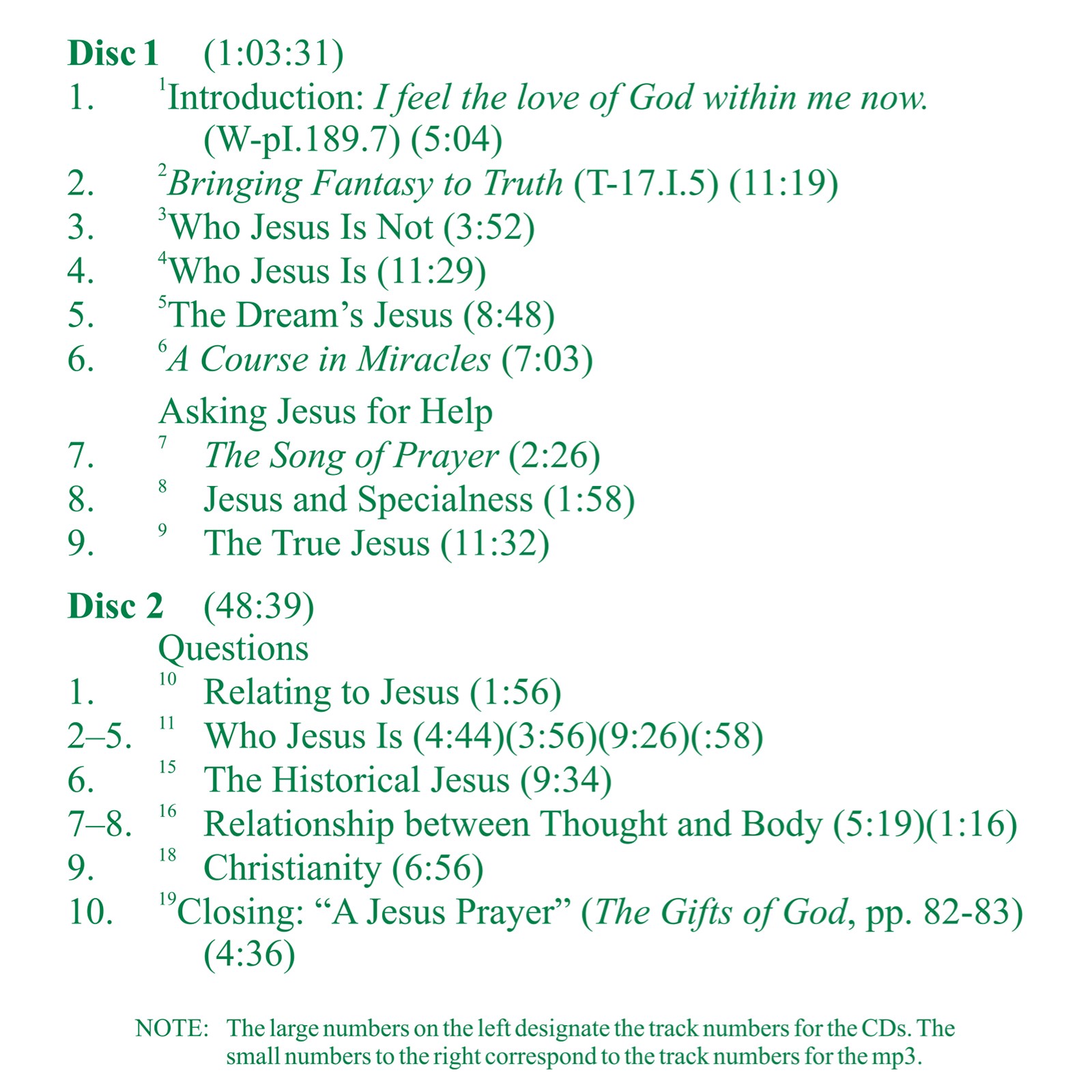 This discussion was part of a four-day class held in Atlanta in 2003. In response to numerous requests, we decided to publish it separately, while also keeping it in sequence in the larger stream “The Journey: From the Ego Self to the True Self,” as well as in our audio stream “Jesus: Songs of Gratitude and Love.” It is essentially a presentation of what it means to relate to Jesus—the reflection of Heaven’s light in our minds—without being trapped in the ego’s transformation of him into a figure who meets our needs, thus effectively sealing off the light and plunging us into the darkness of specialness and individuality.