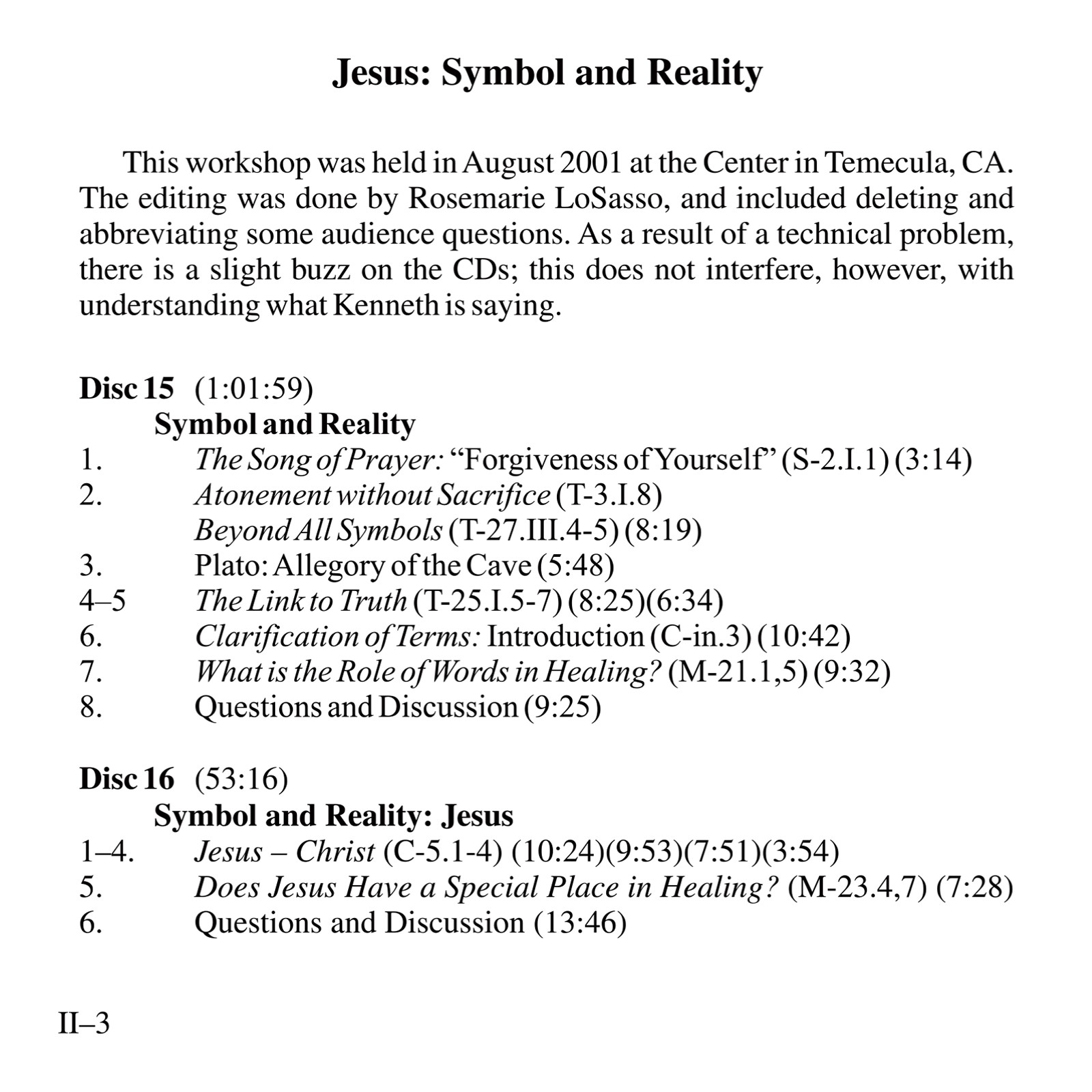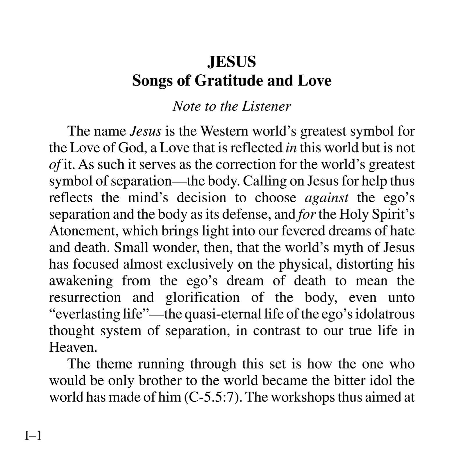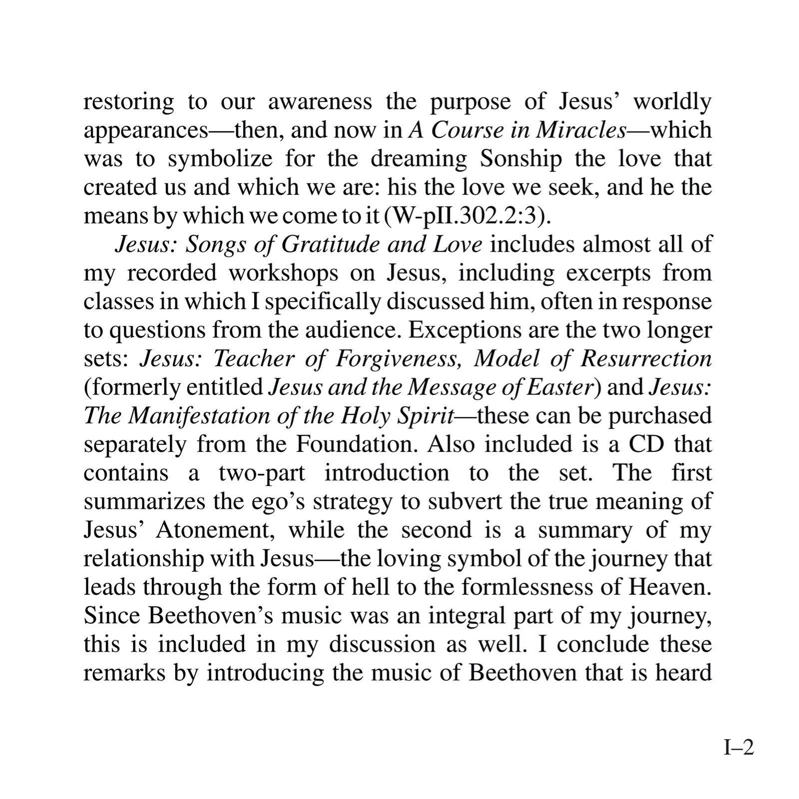 This album includes almost all of Kenneth’s recorded workshops (please see Table of Contents for complete listing) on Jesus through 2004, along with excerpts from several classes. Not included are two longer sets (available separately): Jesus:Teacher of Forgiveness, Model of Resurrection (formerly Jesus and the Message of Easter) and Jesus:The Manifestation of the Holy Spirit. There is also an introduction consisting of a summary of the ego’s conspiracy to subvert the true meaning of Jesus’ Atonement, and Kenneth speaking of his relationship with Jesus and the music of Beethoven, which is heard throughout. The aim of the teaching is to restore to our awareness the purpose of Jesus’ worldly appearances: to symbolize the love that created us and that we are.