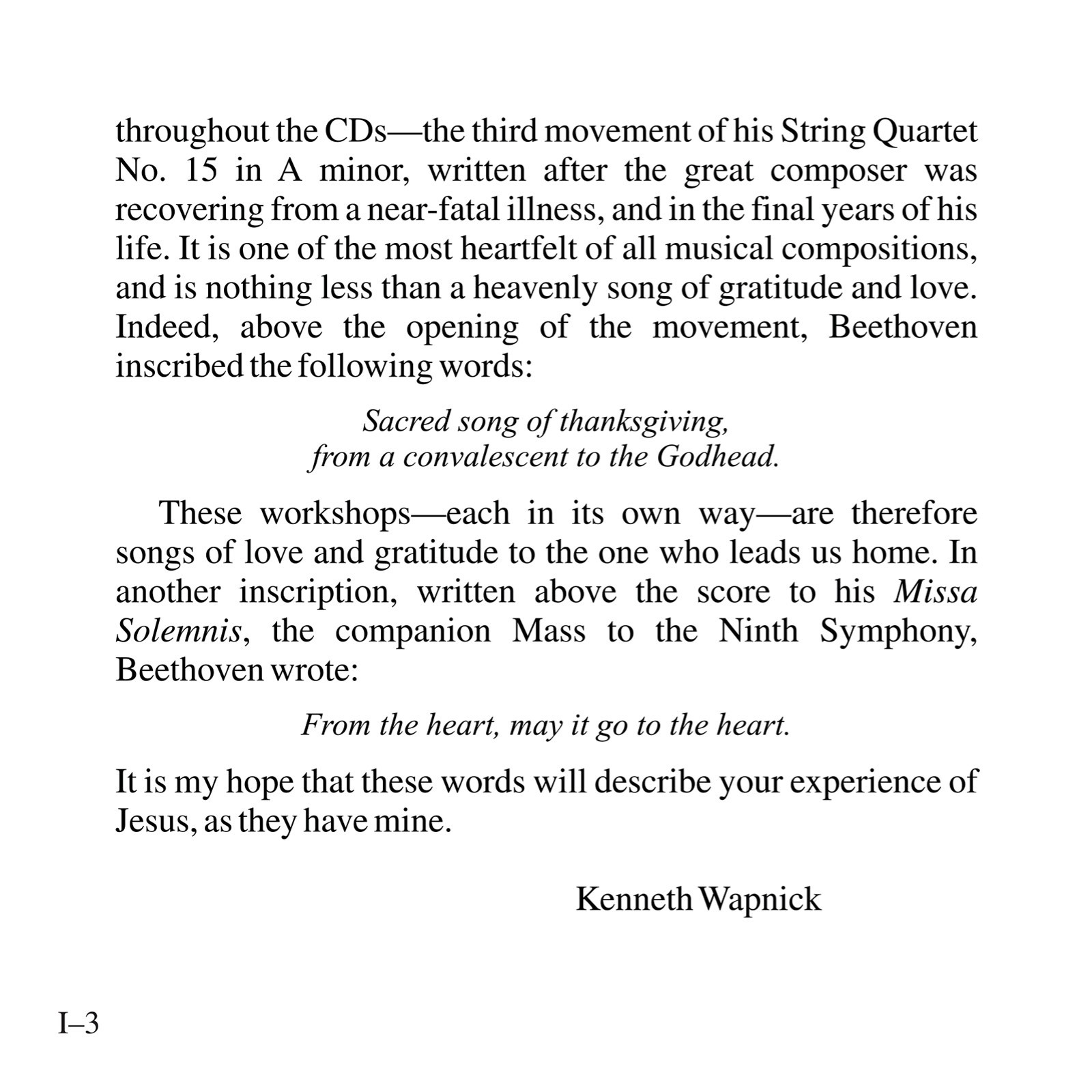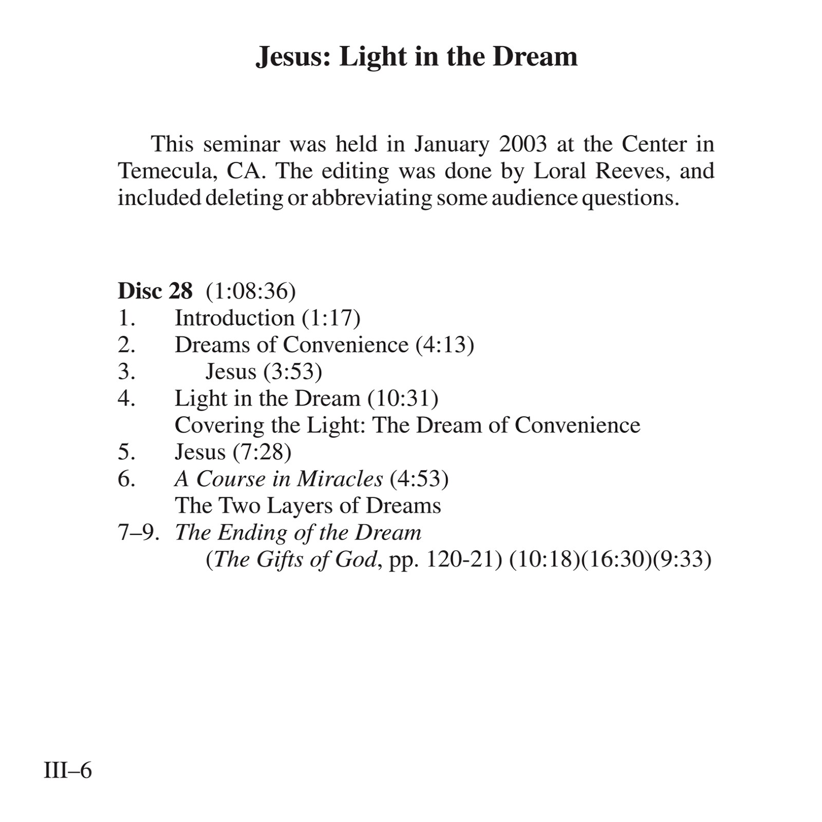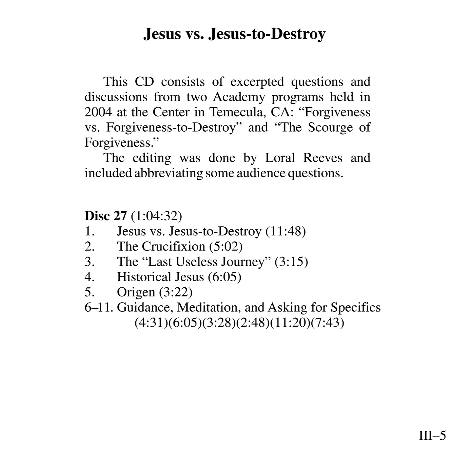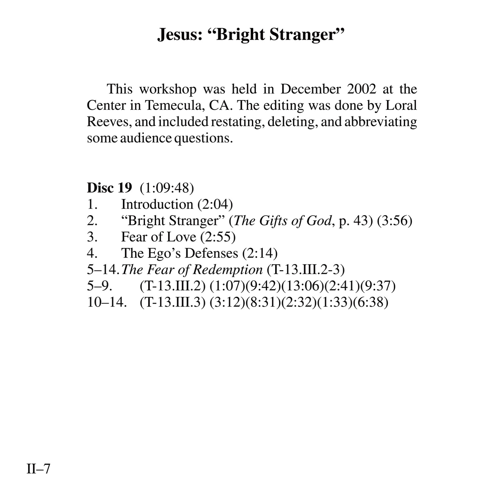 This album includes almost all of Kenneth’s recorded workshops (please see Table of Contents for complete listing) on Jesus through 2004, along with excerpts from several classes. Not included are two longer sets (available separately): Jesus:Teacher of Forgiveness, Model of Resurrection (formerly Jesus and the Message of Easter) and Jesus:The Manifestation of the Holy Spirit. There is also an introduction consisting of a summary of the ego’s conspiracy to subvert the true meaning of Jesus’ Atonement, and Kenneth speaking of his relationship with Jesus and the music of Beethoven, which is heard throughout. The aim of the teaching is to restore to our awareness the purpose of Jesus’ worldly appearances: to symbolize the love that created us and that we are.