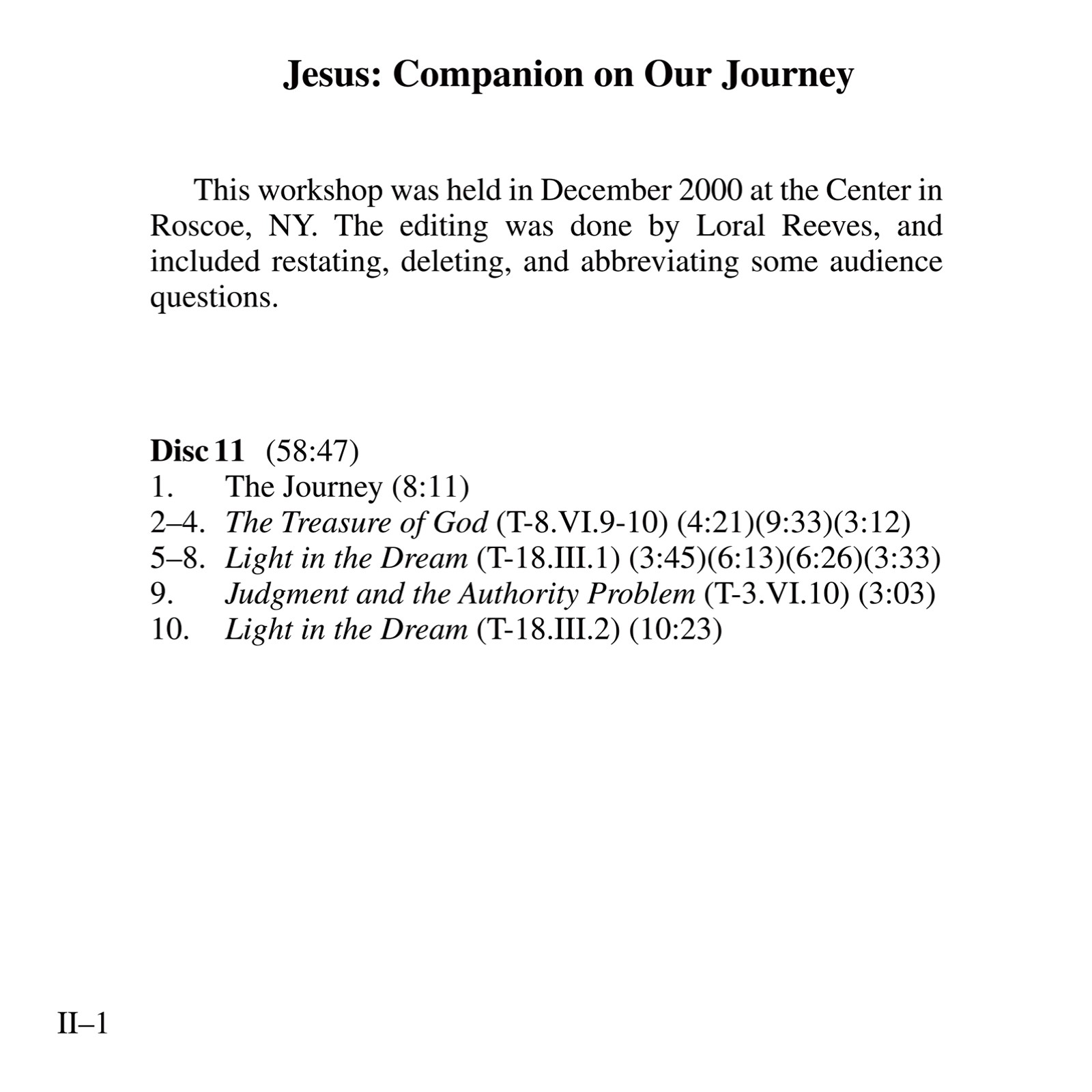 Includes Jesus: Companion on Our Journey (3m99as),