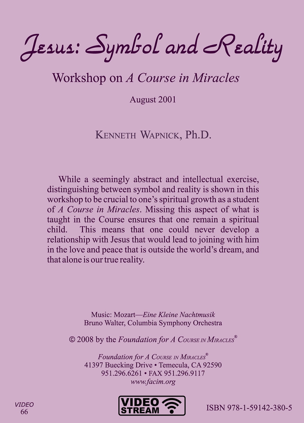 The distinction between symbol and reality is shown to be crucial to one’s spiritual growth as a student of A Course in Miracles. Confusing the two ensures that one remains a spiritual child, never developing the mature relationship with Jesus that leads to the love and peace that is beyond all symbols, and that alone is our true reality.