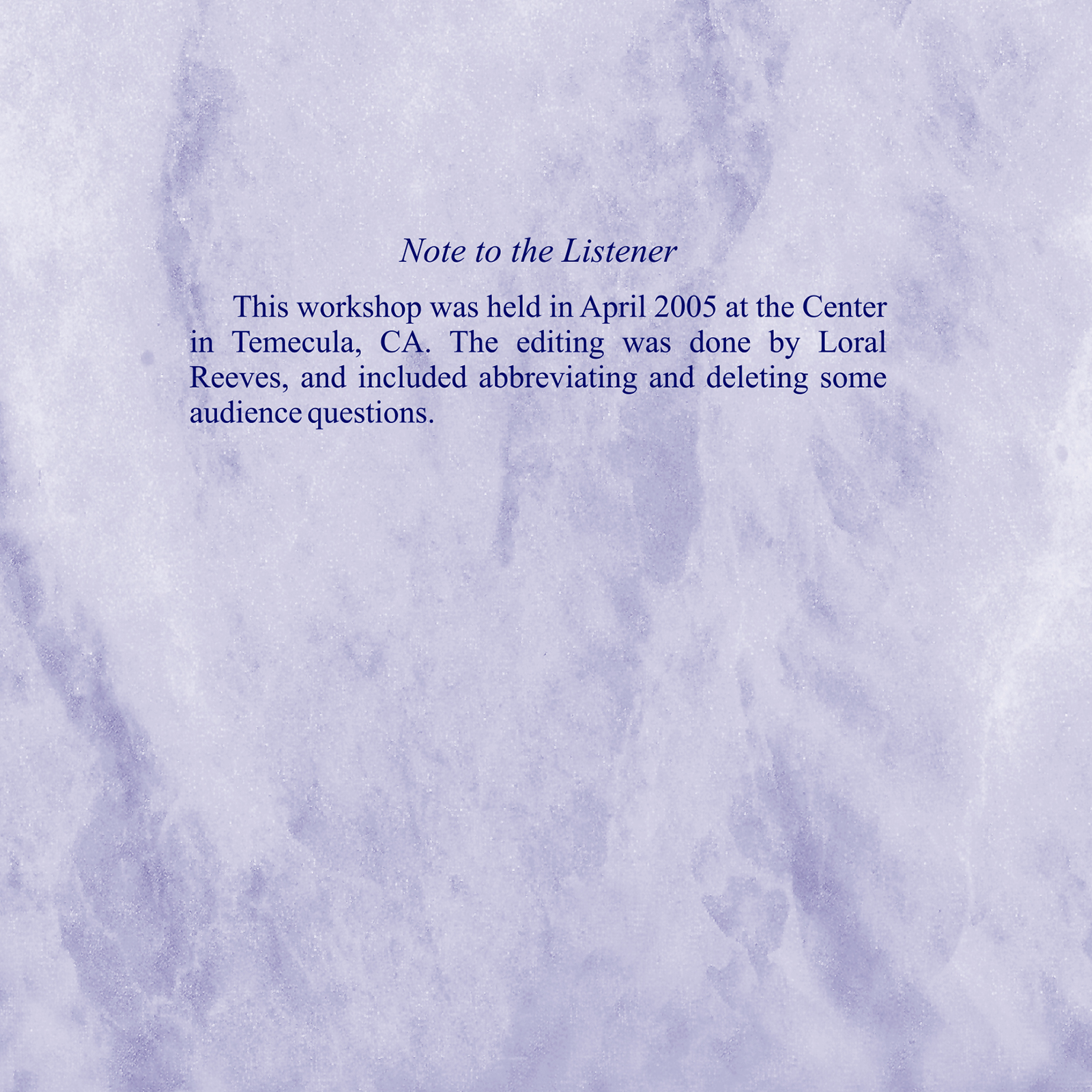 Original Workshop Date: 04/2005
