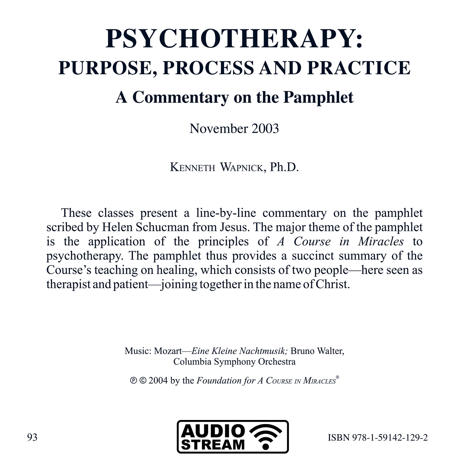 These classes present a line-by-line commentary on the pamphlet scribed by Helen Schucman from Jesus. The major theme of the pamphlet is the application of the principles of A Course in Miracles to psychotherapy. The pamphlet thus provides a succinct summary of the Course’s teaching on healing, which consists of two people—here seen as therapist and patient—joining together in the name of Christ.