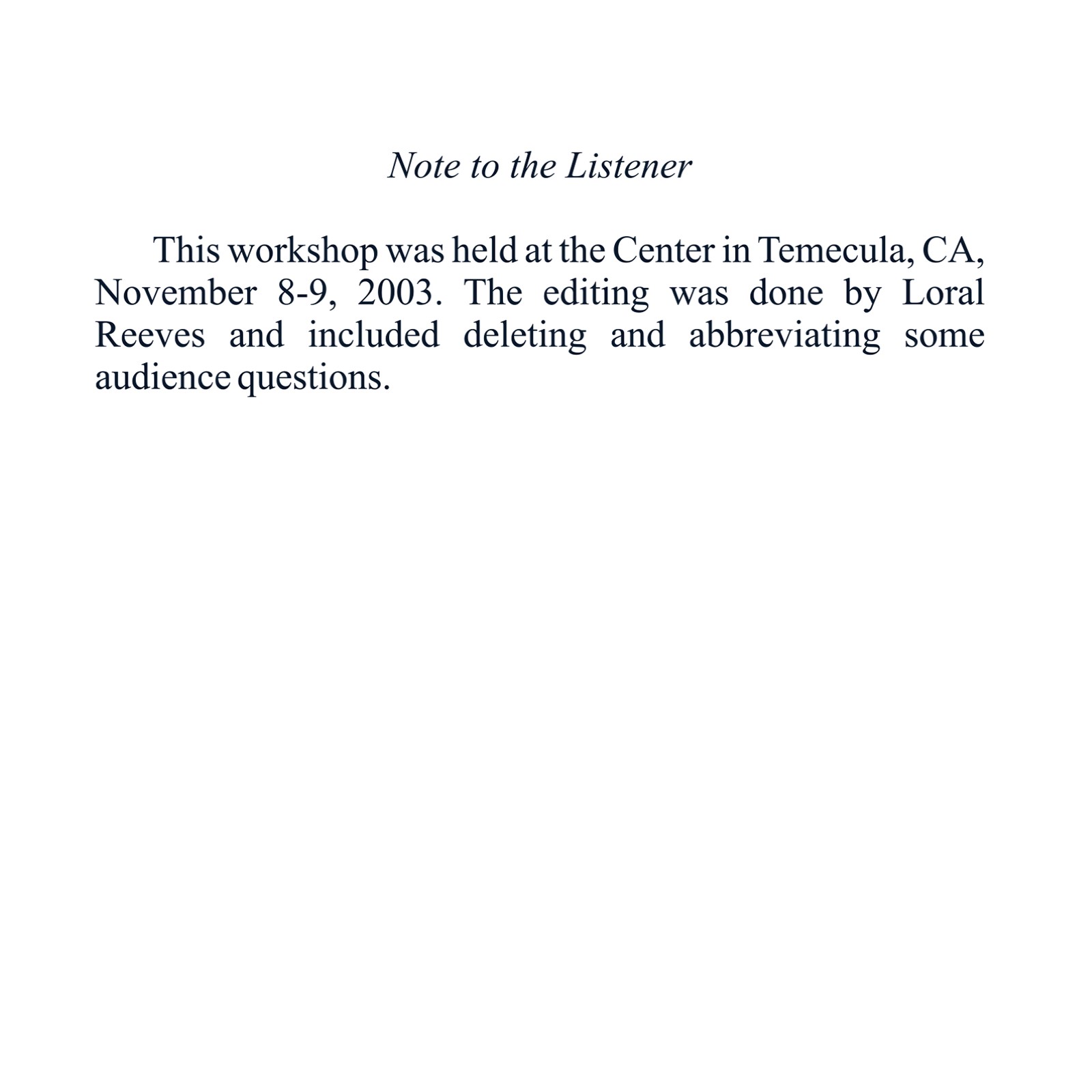 Original Workshop Date: 11/2003