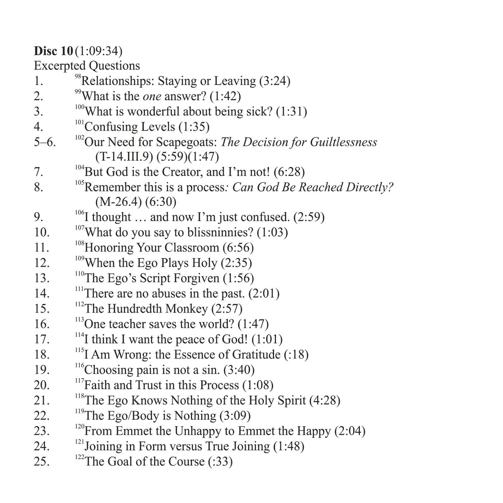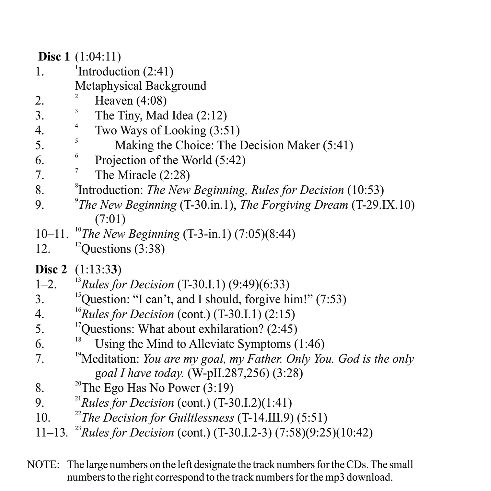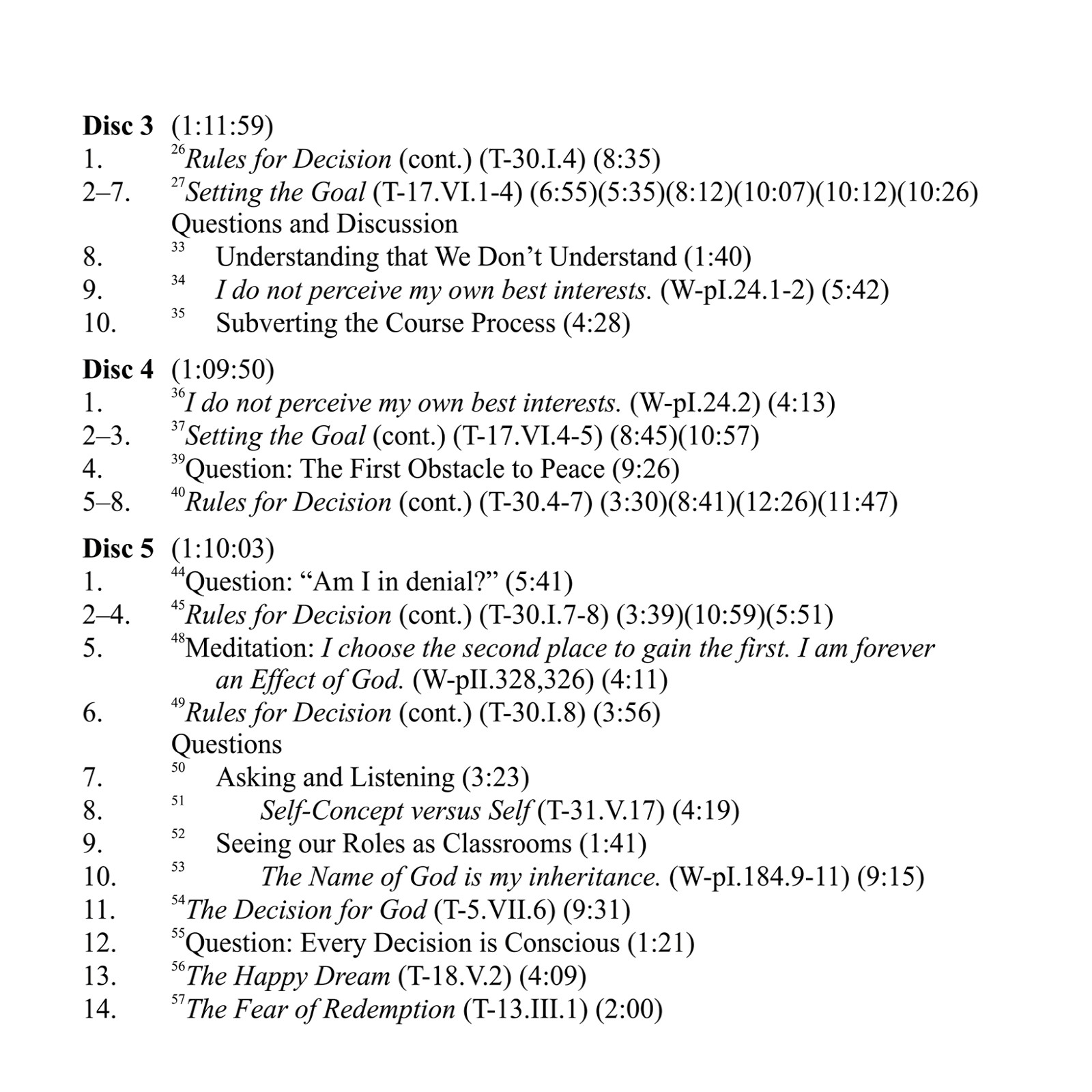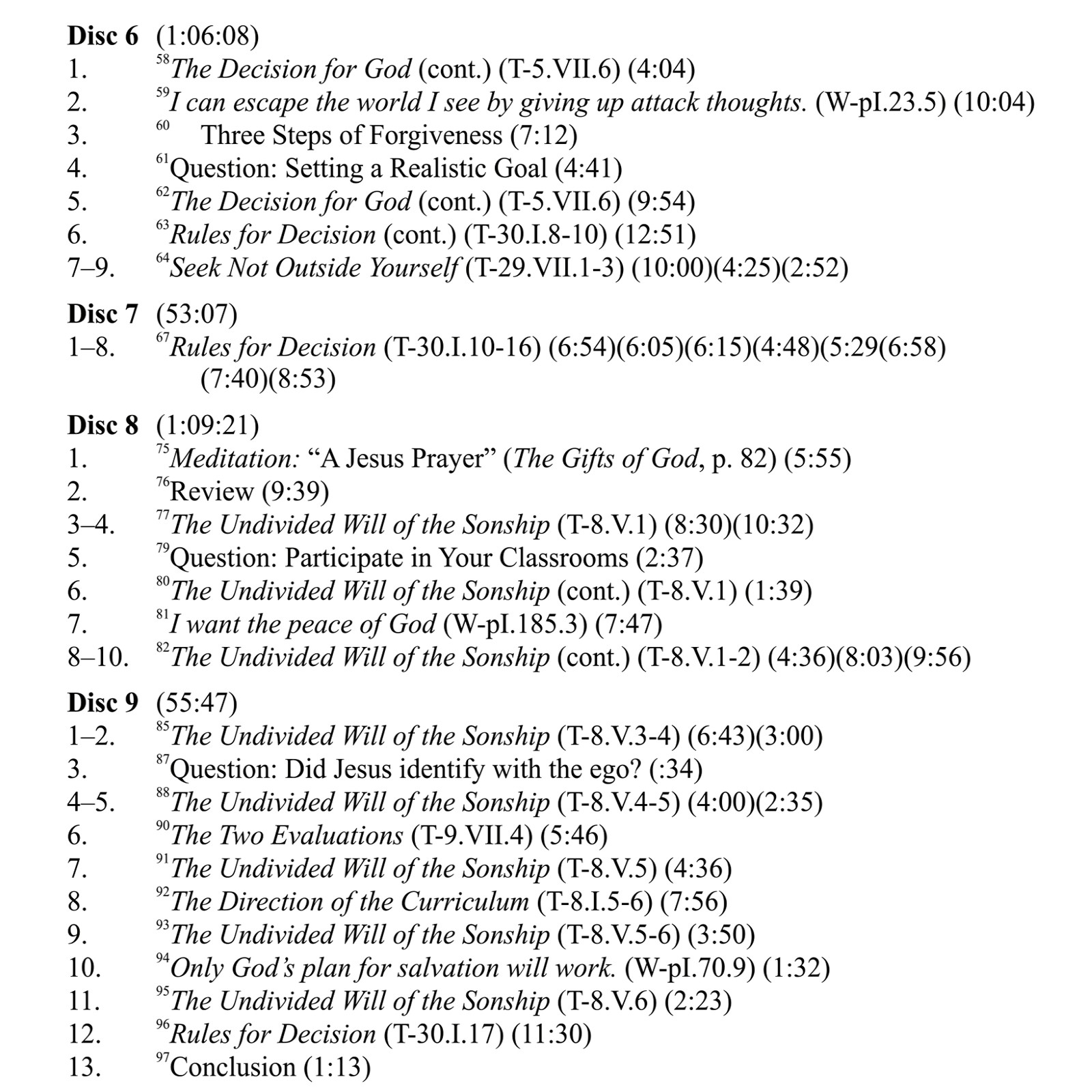 This workshop consists of a line-by-line analysis of the seven rules from the section “Rules for Decision” in Chapter 30 of the text. It is an in-depth study of the Course’s concept of decision making, which emphasizes the importance of seeing this as a process. The discussion also focuses on what it means to choose Jesus, rather than the ego, as our teacher.