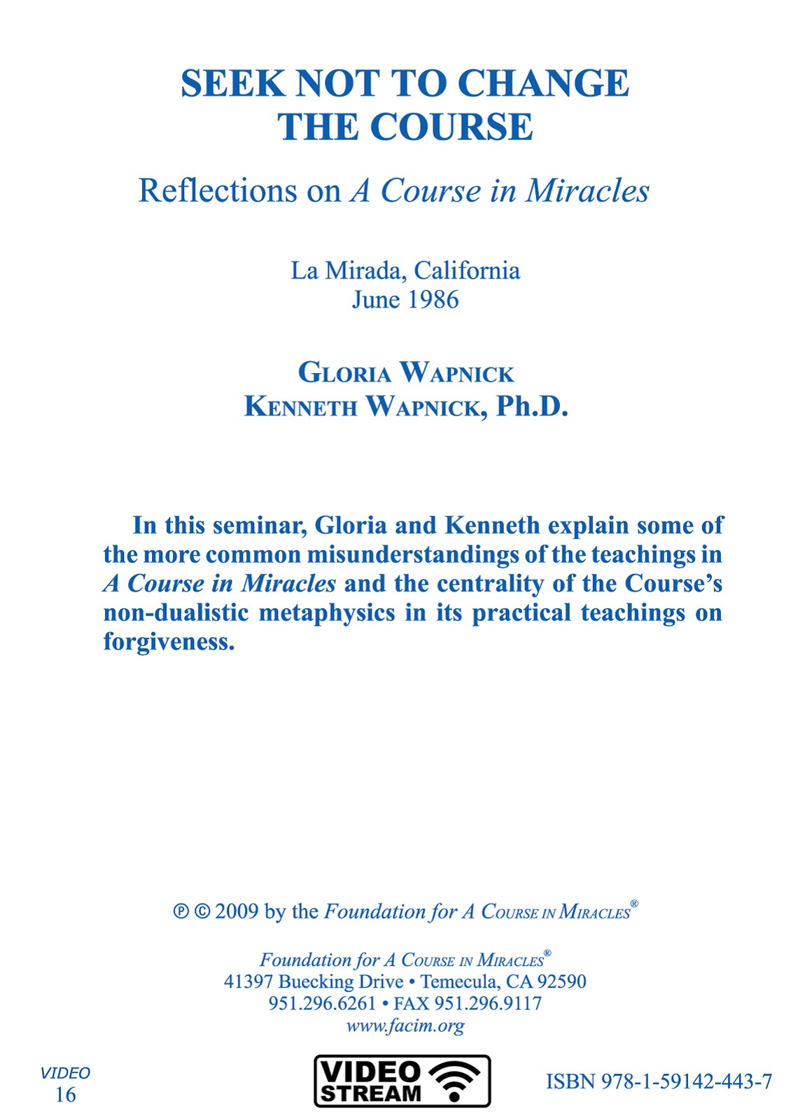 This video consists of a 75-minute discussion of some common misunderstandings about the Course, followed by a 60-minute session of questions and answers. Among the more important themes covered is the centrality of the Course’s teaching that God did not create the world, and the application of this principle to the Course’s teaching on forgiveness.