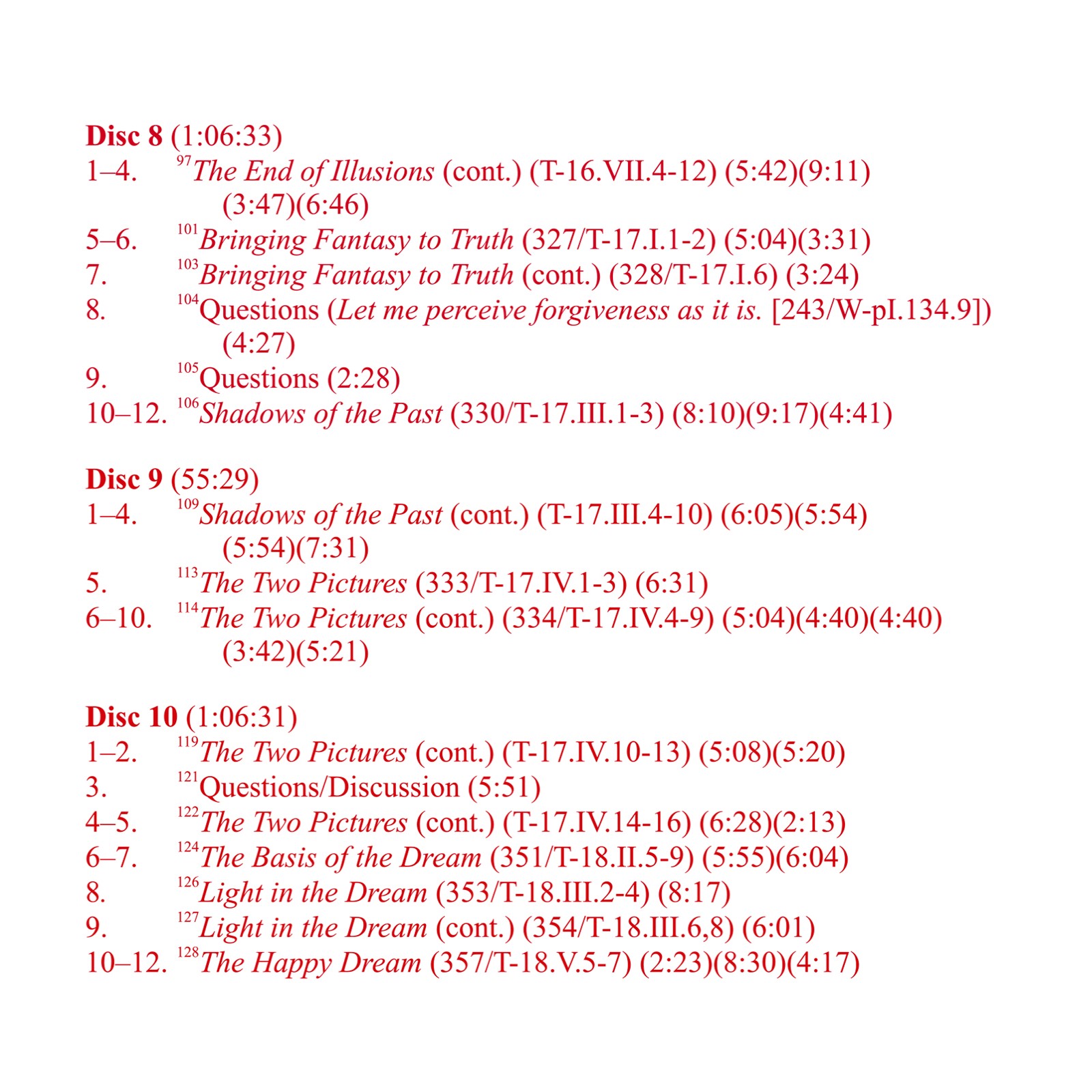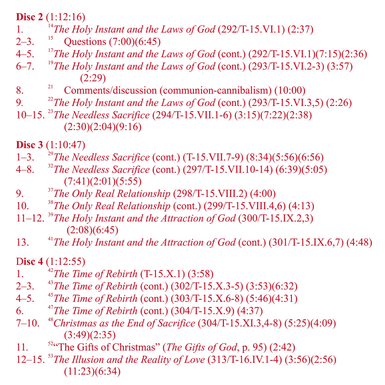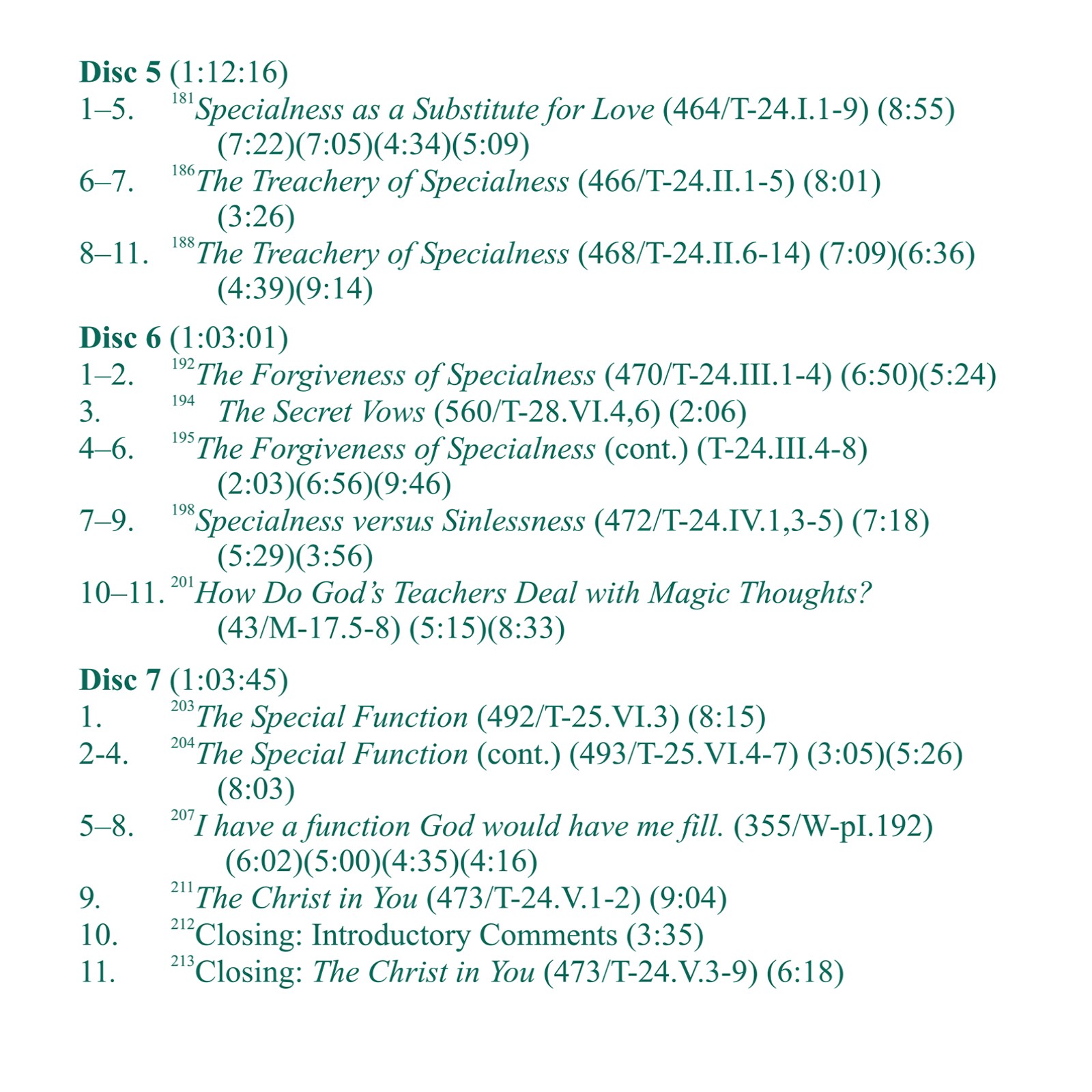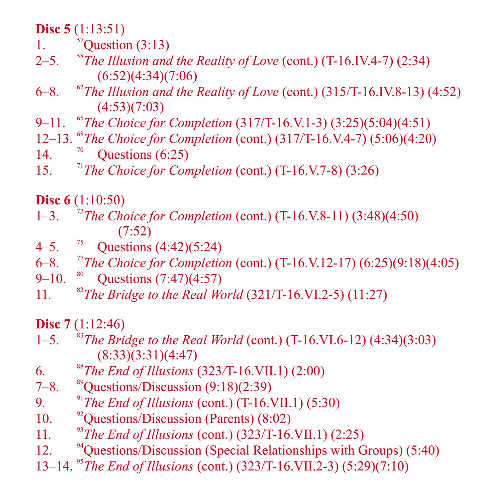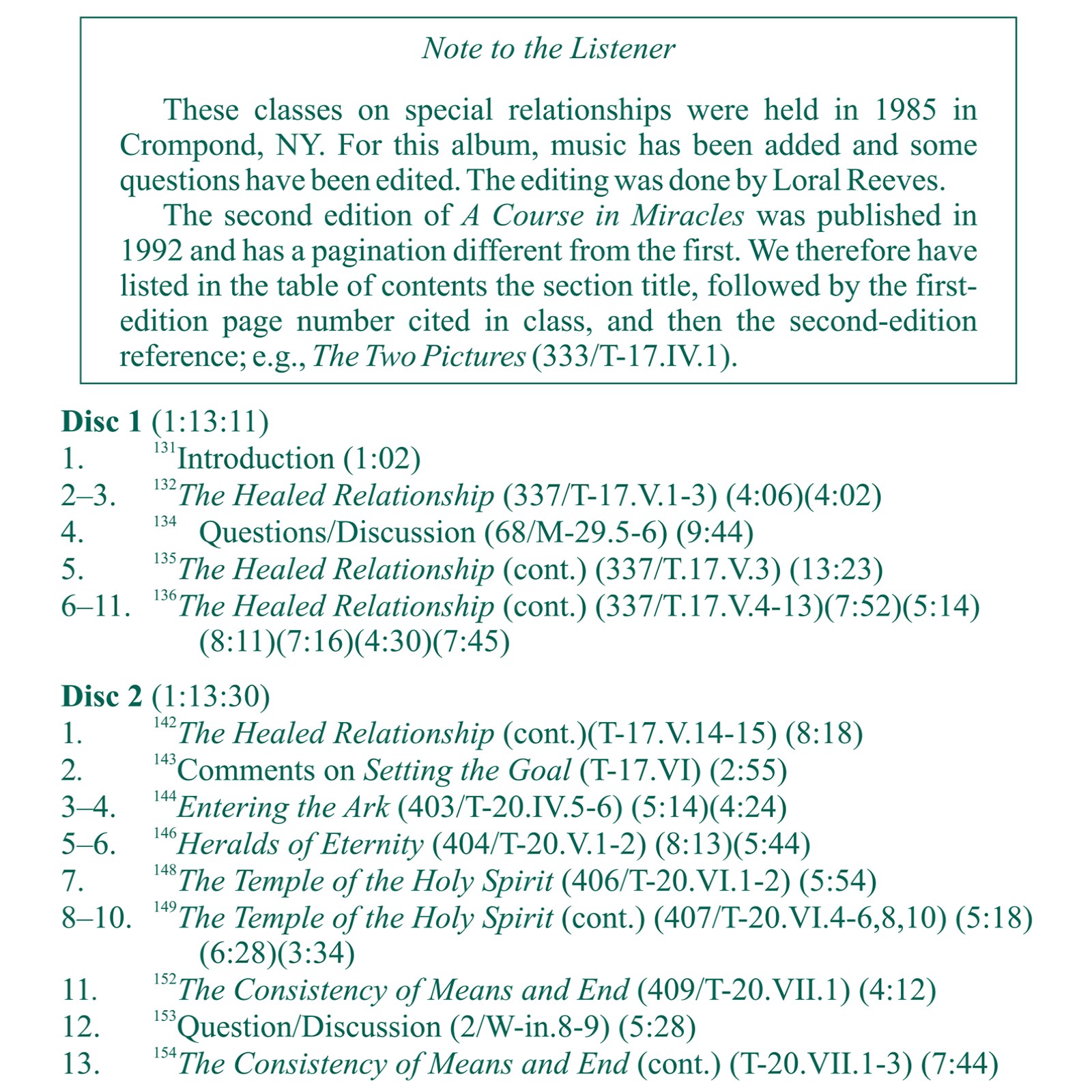 These classes present a line-by-line analysis of sections in A Course in Miracles pertaining to special relationships, which are seen to be the home of guilt. Part 1 explains in detail the unloving nature of most relationships, and how to transform them. Part 2 continues and then draws to a conclusion the discussion begun in Part 1, and includes an analysis of special love relationships and their transformation into holy relationships.