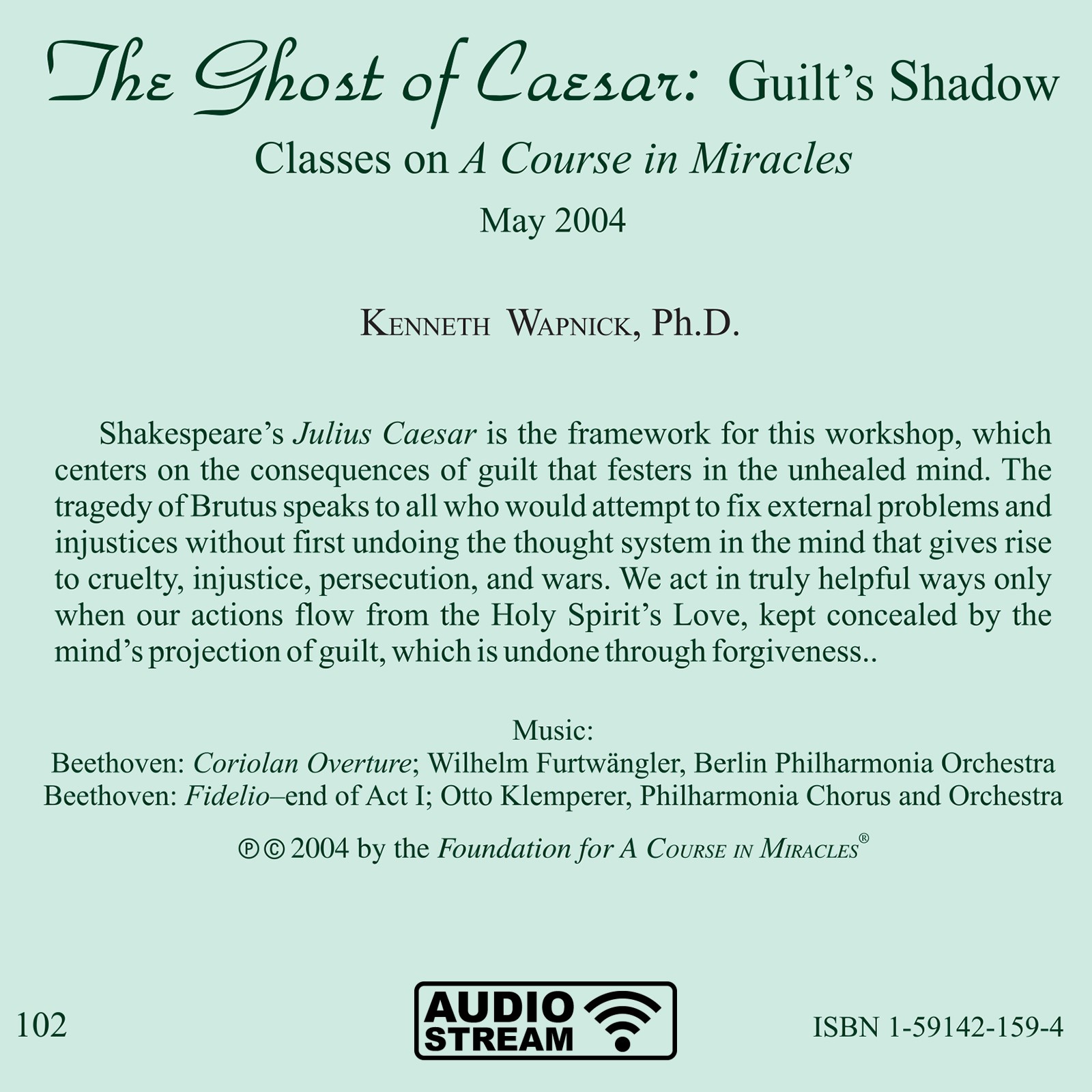 Shakespeare’s Julius Caesar is the framework for this workshop, which centers on the consequences of guilt that festers in the unhealed mind. The tragedy of Brutus speaks to all who would attempt to fix external problems and injustices without first undoing the thought system in the mind that gives rise to cruelty, injustice, persecution, and wars. We act in truly helpful ways only when our actions flow from the Holy Spirit’s Love, kept concealed by the mind’s projection of guilt, which is undone through forgiveness.