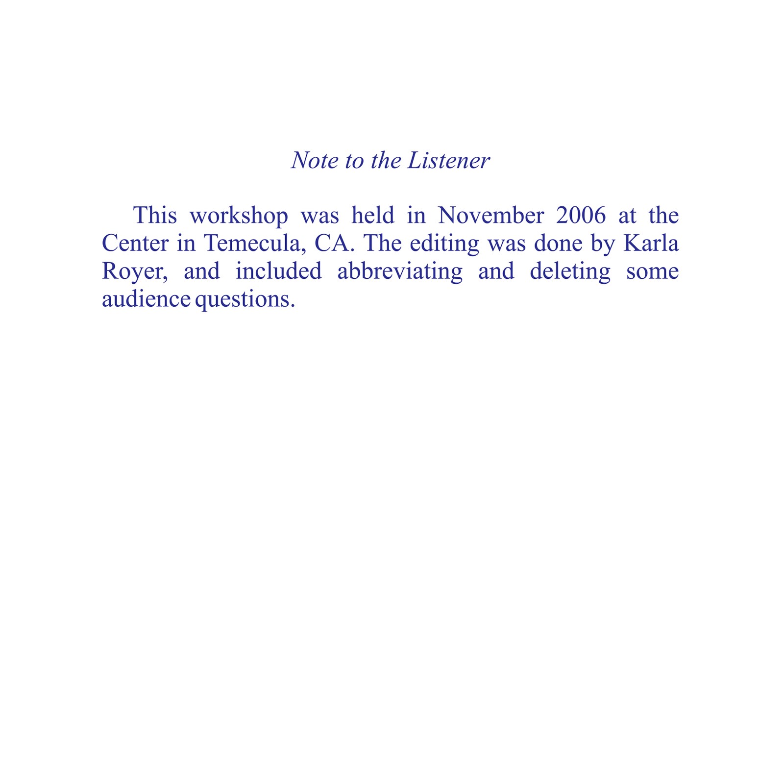 Original Workshop Date: 11/2006
